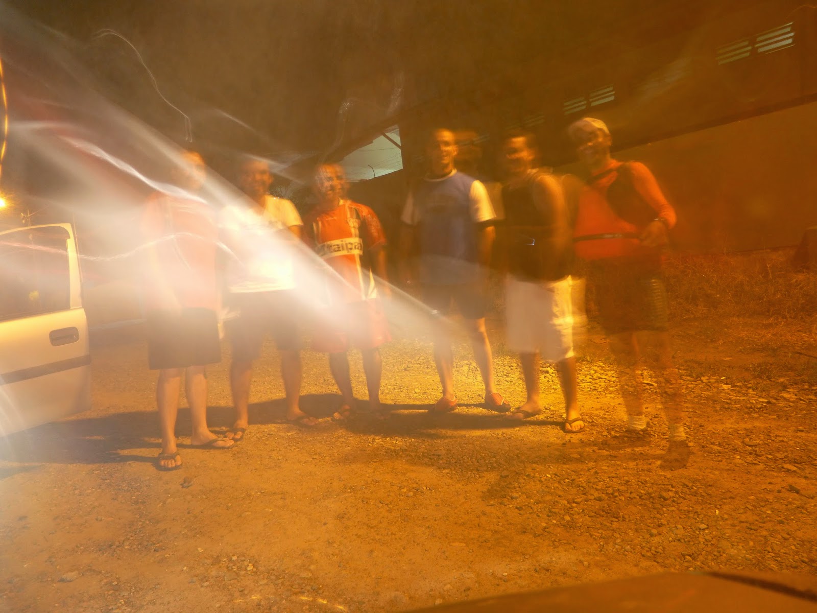 Às 3':30" finalmente chegaram o restante da equipe. Fizemos a foto oficial na frente da casa do Boldt, mas prá variar e ter que suportar as críticas e zuações do Cabelo, saiu tremula e cheia de vultos! Mas eu não tenho culpa se os carinhas não ficam quietinhos e aguardam 5 segundos depois de batida para certificar-se que deu certo!